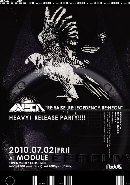 2006年11月にスタートし、数少ないサンデーアフタヌーンのドラムンベースパーティーとして熱狂的な夜を演出してきたNEON。ICICLE,SPECTRASOUL,REDEYES,LENZMANなどのアーティストたちを招聘し、常にドラムンベースの新たな方向性を示唆してきた。2010年4月には、”DEEPFLOW FM TOKYO”と称したPODCASTINGプログラムをスタート。世界のアーティストをフィーチャーし、東京発の最先端のサウンドを提供している。レジデント陣のリリースなどプロデューサーとしても多様な活動をする中、2010年7月、NEONが新たな伝説の夜を蘇らせる。